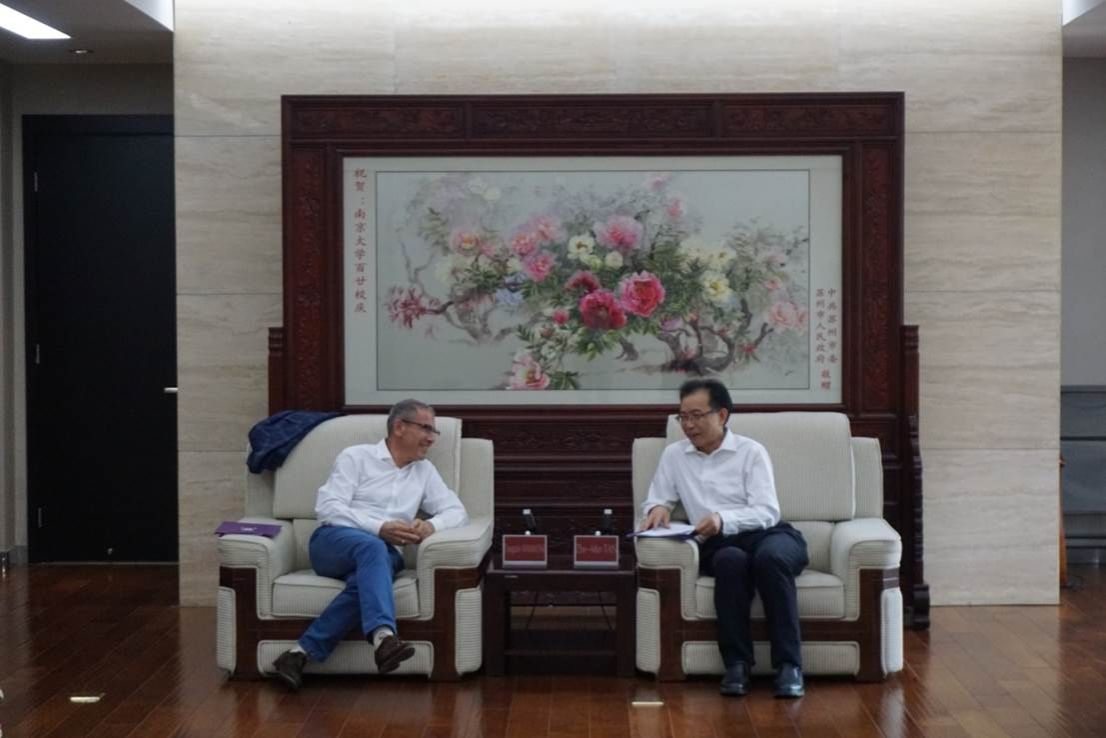 2023年8月25日下午,法国阿尔多瓦大学校长马默(Pasquale Mammone)一行访问凯发k8官网,谈哲敏校长在仙林校区热情会见来宾。双方就在人文学科良好合作的基础上拓展在人工智能、绿色化学等领域的全面合作深入探讨。校党委常委、副校长王振林陪同会见。
