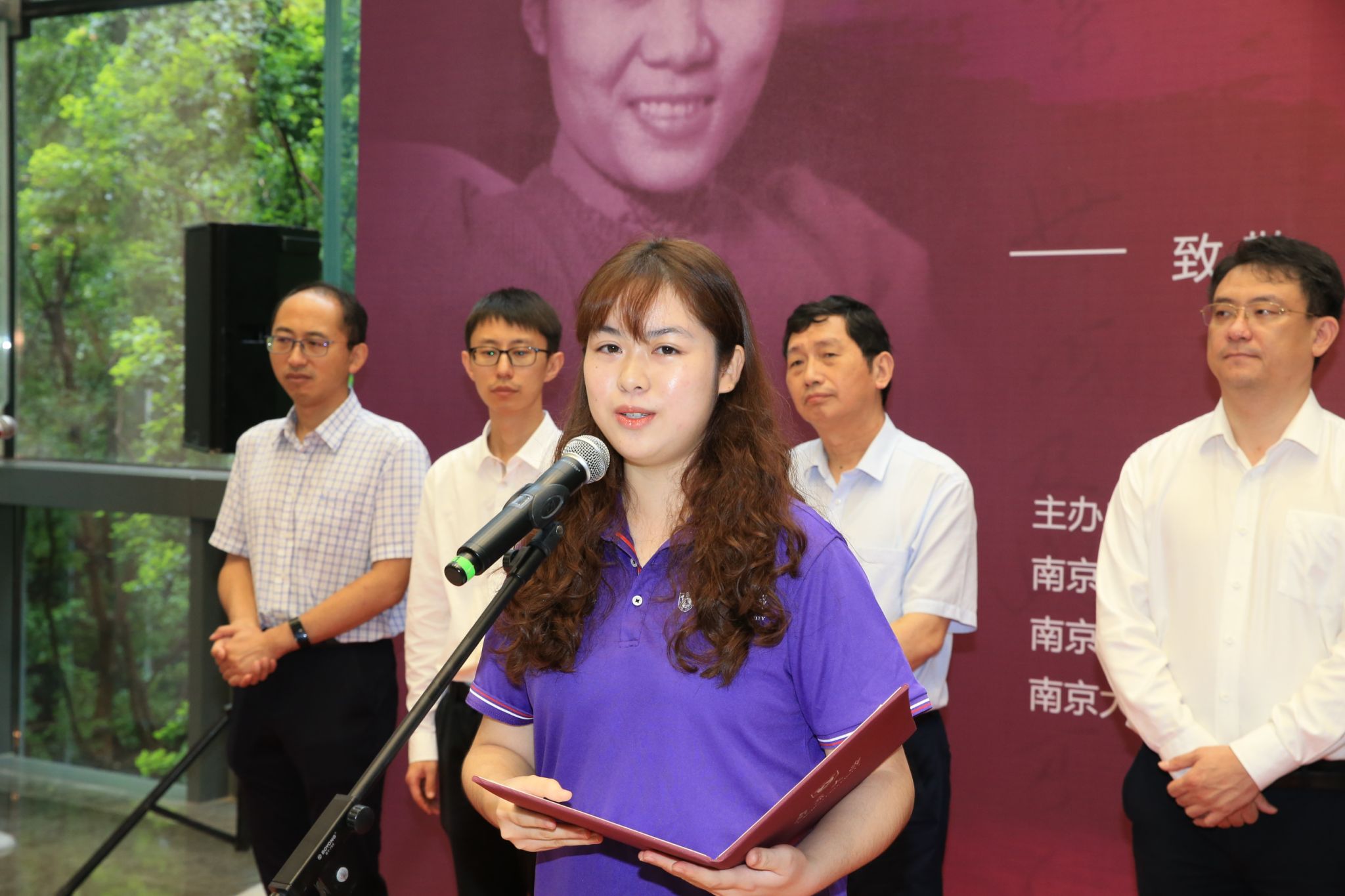学生代表谭睿睿向大家分享了自己参加健雄书院纪念吴健雄先生活动的感悟,本次展览中更能领略先生勇敢无畏、追求真理、不忘根本的人格魅力,作为“健雄学子”将以先生为楷模,奋进传承“健雄精神”。