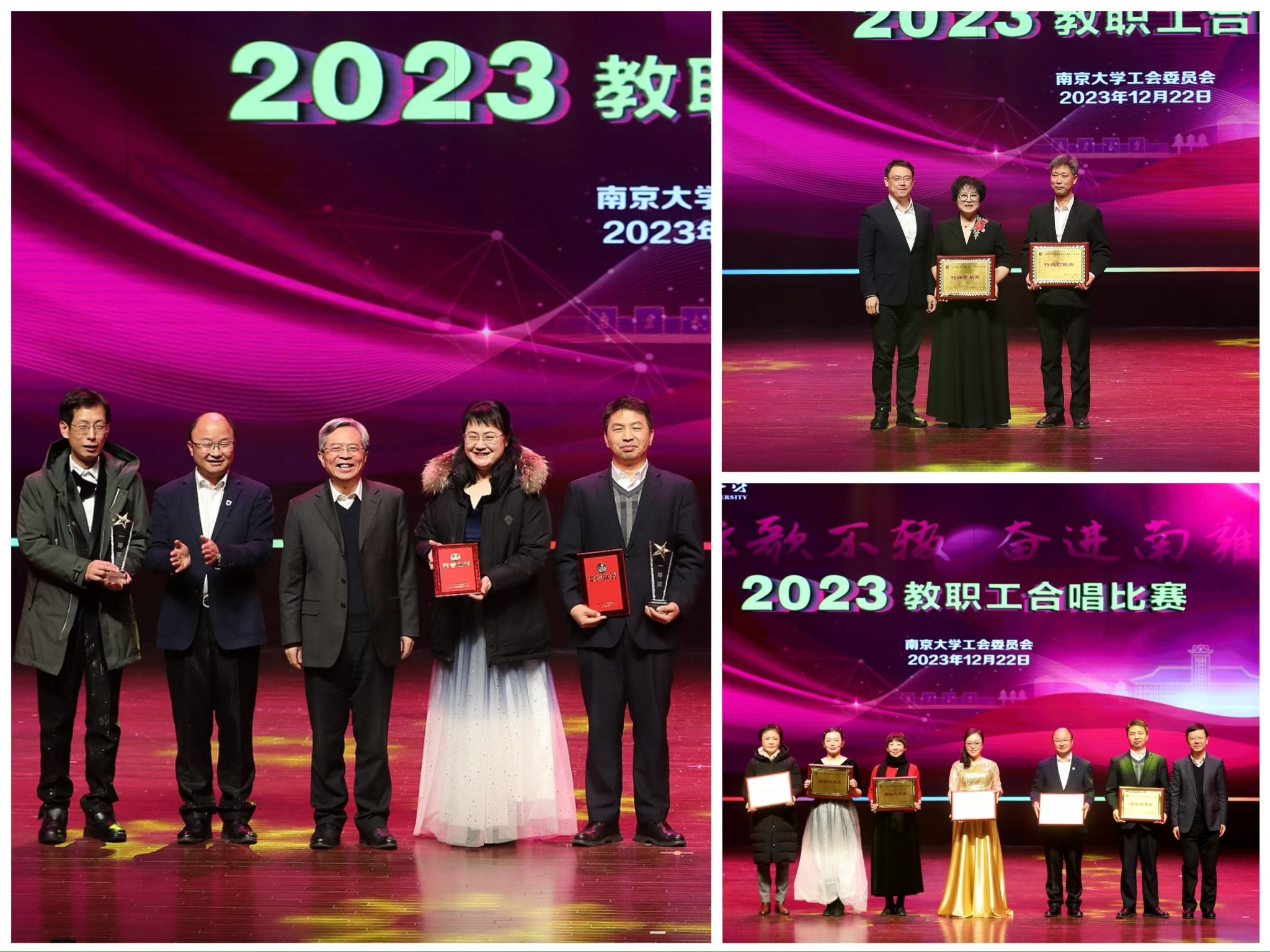 为深入学习贯彻党的二十大精神、中国工会十八大精神,团结凝聚广大教职工开拓进取、真抓实干,营造团结奋进、昂扬向上的校园氛围,12月22日晚,由校工会主办的“弦歌不辍 奋进南雍”凯发k8官网2023教职工合唱比赛在仙林校区恩玲剧场举行。参加此次合唱比赛的共有来自16个分工会的500余名教职工,并有女教授合唱团和教职工合唱团特别演出。校党委常务副书记杨忠、校长助理索文斌参加演出并全程观看比赛。校长助理李斌以及相关部处和院系的负责同志与现场近千名师生共同观看比赛。