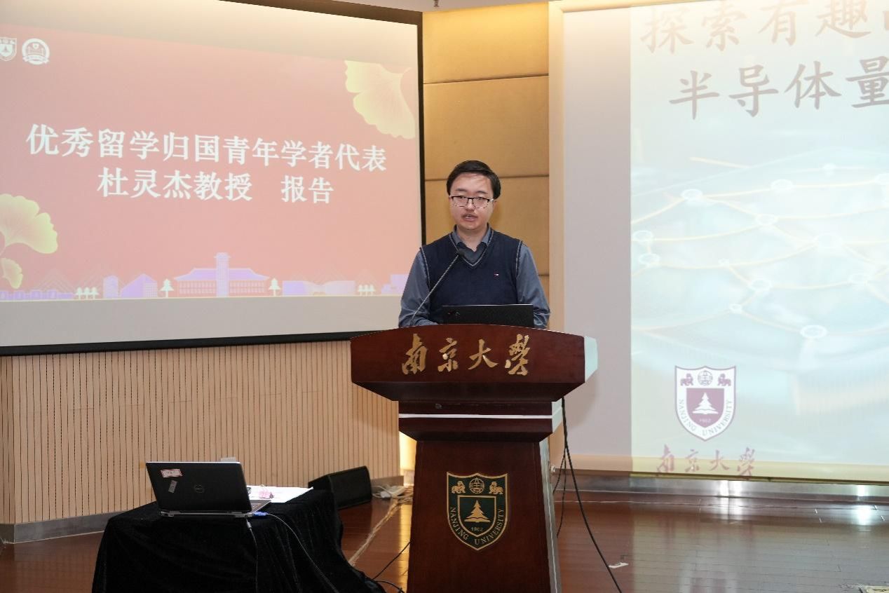 优秀留学归国青年学者代表杜灵杰教授以《探索有趣而未知的半导体量子世界》为题作科普报告,结合自己留学归国和科研工作的经历和体会,引导中学生树立留学报国的远大理想。
