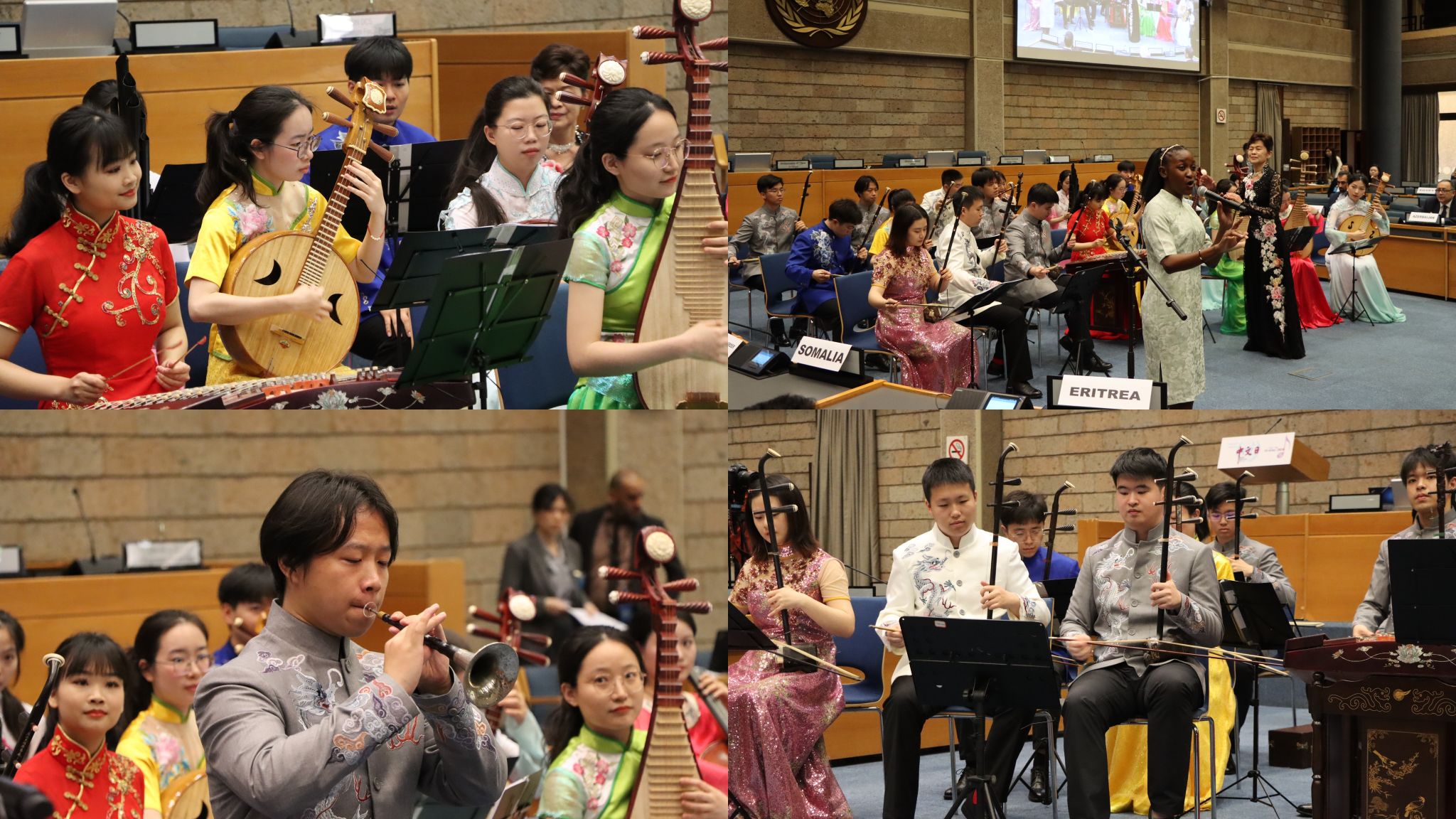 2024年是中华人民共和国成立75周年,也是“一带一路”倡议提出11周年,为深入落实习近平总书记重要回信精神,进一步增加中非之间文化交流,4月17日至21日,我校民族乐团赴联合国内罗毕办事处参加“国际中文日”活动,并在肯尼亚、埃及开展“中非互鉴,美美与共”主题巡演。联合国副秘书长班古拉,江苏省委常委、常务副省长马欣,中国驻肯尼亚大使周平剑,部分国家驻联合国的常驻代表,我校党委副书记陈云松出席联合国内罗毕办事处“国际中文日”活动。