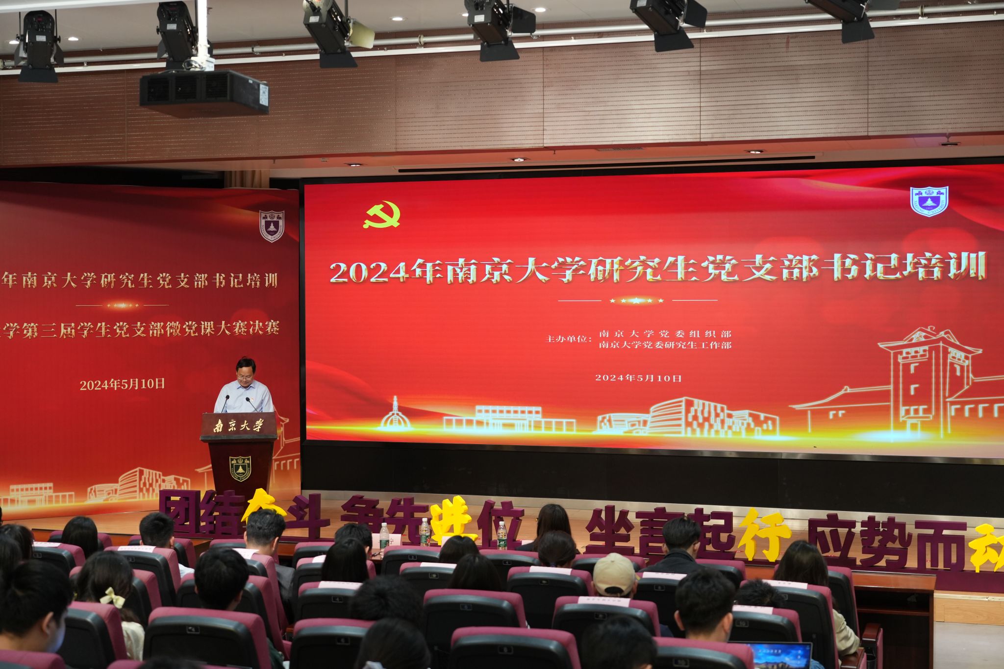 为深入学习贯彻习近平新时代中国特色社会主义思想和党的二十大精神,推进研究生党建工作高质量发展,在强国建设、民族复兴的新征程上引领带动研究生人才培养高质量发展,5月10日,我校研究生党支部书记集中培训在仙林校区图书馆报告厅举行。校党委常委、党委研究生工作部部长、研究生院常务副院长周济林出席培训会并讲话,党委组织部副部长范赟做专题讲座,党委研究生工作部副部长李宁主持会议。全体研究生党支部书记参加。