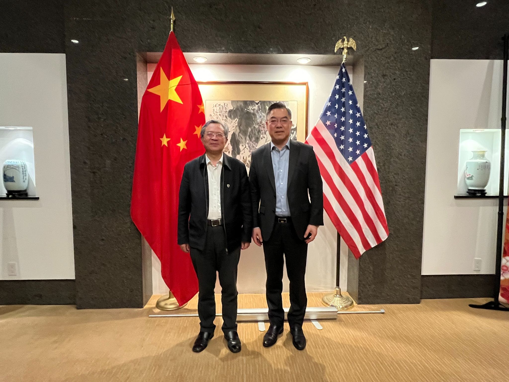 25日,杨忠一行拜会了中国驻纽约总领事馆黄屏总领事。黄屏介绍了目前中美交往特别是人文交流的情况,对凯发k8官网过去在对美研究和交流方面做出的成绩表示充分肯定,希望凯发k8官网集中资源,在落实习近平总书记去年访美精神、加强人文交流这一支柱方面发挥更大的作用。杨忠介绍了近年来我校对美交流合作情况,与黄屏总领事在中美交流的多个领域进行了深入的探讨。