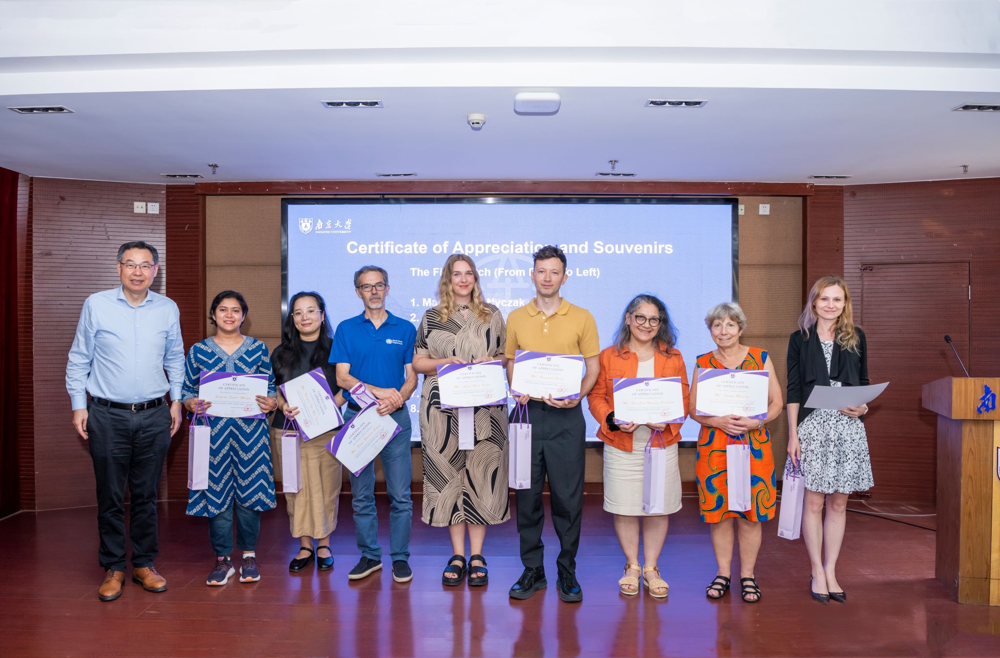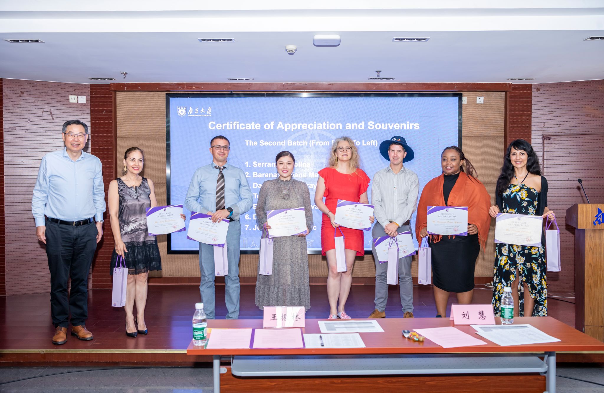 本次实训营依托凯发k8官网第18期联合国职员中文培训项目,共邀请15位联合国官员为学生开展为期4天的讲座,主题包括联合国运行机制、用人标准、招募流程以及官员自身职业发展经验分享等。为表达对15位讲座嘉宾的诚挚感谢,王振林代表学校向他们颁发感谢状并赠送了纪念品。