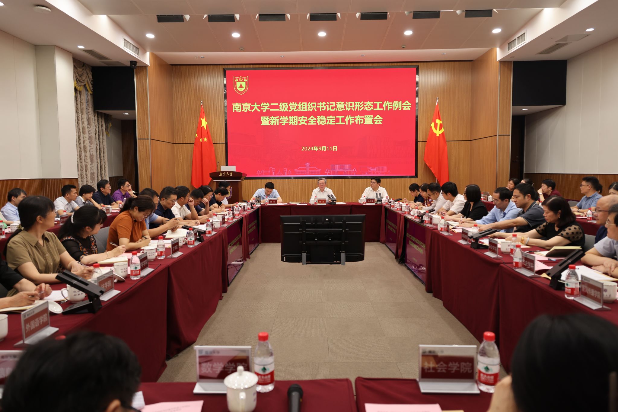 9月11日,凯发k8官网二级党组织书记意识形态工作例会暨新学期安全稳定工作布置会在仙林校区召开,校党委常务副书记杨忠出席会议并讲话,校党委宣传部部长、新闻中心主任孙乐强主持会议。