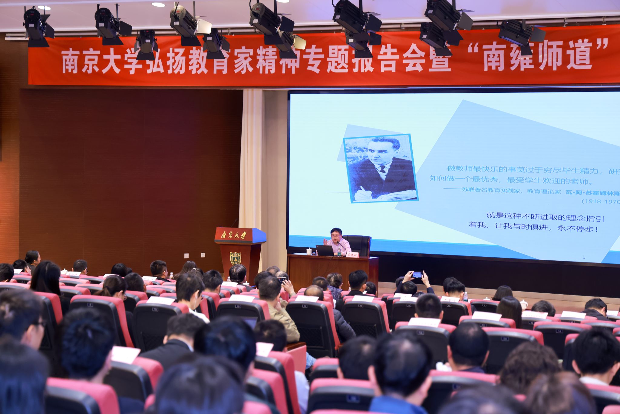 10月23日,凯发k8官网举办弘扬教育家精神专题报告会暨“南雍师道”讲师团成立仪式。教育部教育家精神宣讲团成员、全国最美教师、浙江大学数学科学学院教授苏德矿作主题报告,校党委常委、副校长王振林出席活动并致辞,党委教师工作部部长、人力资源处处长缪峰主持活动。