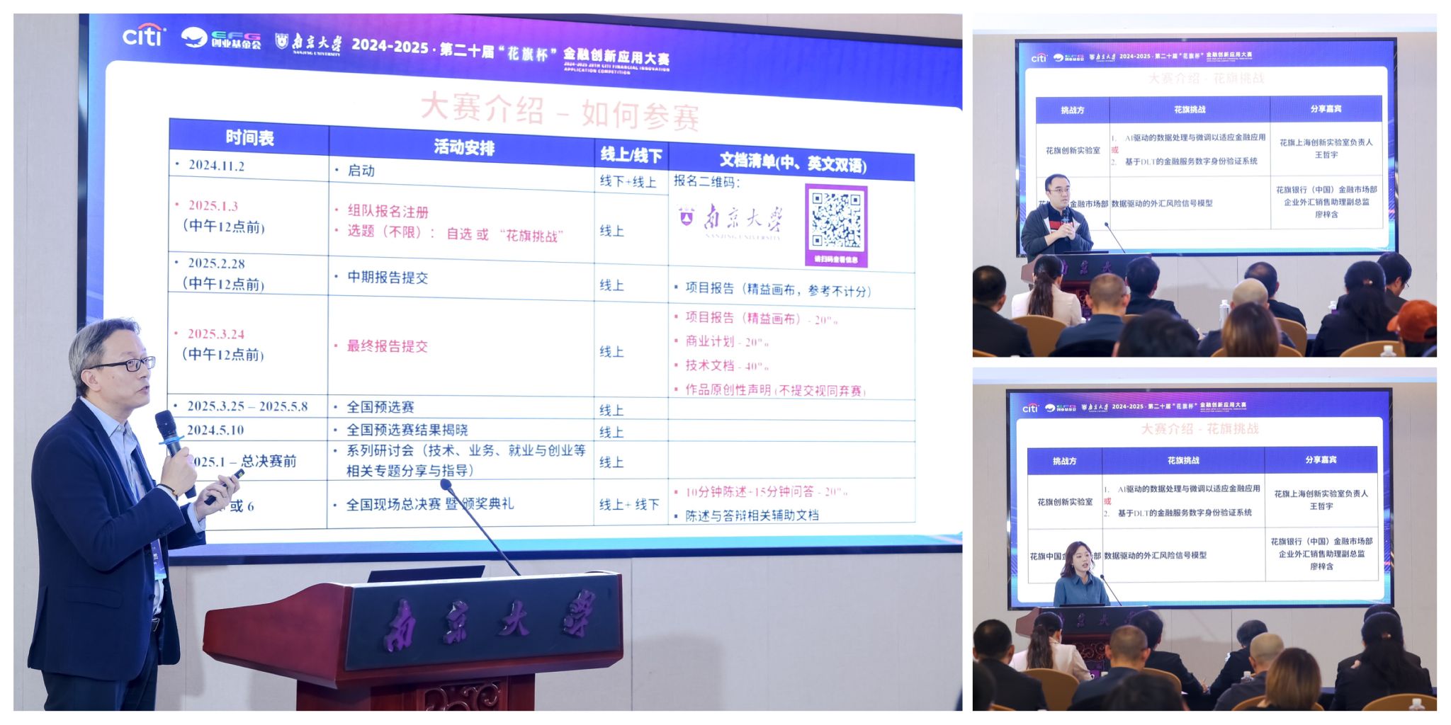 大赛组委会为老师同学们介绍了新一届“花旗挑战”。据介绍,本届大赛邀请花旗中国金融市场部和花旗创新实验室继续发起花旗挑战,聚焦如何利用人工智能、分布式账本等热点技术解决真实业务场景中的痛点问题,面向全国在校大学生征集具有商业化前景的金融科技解决方案。