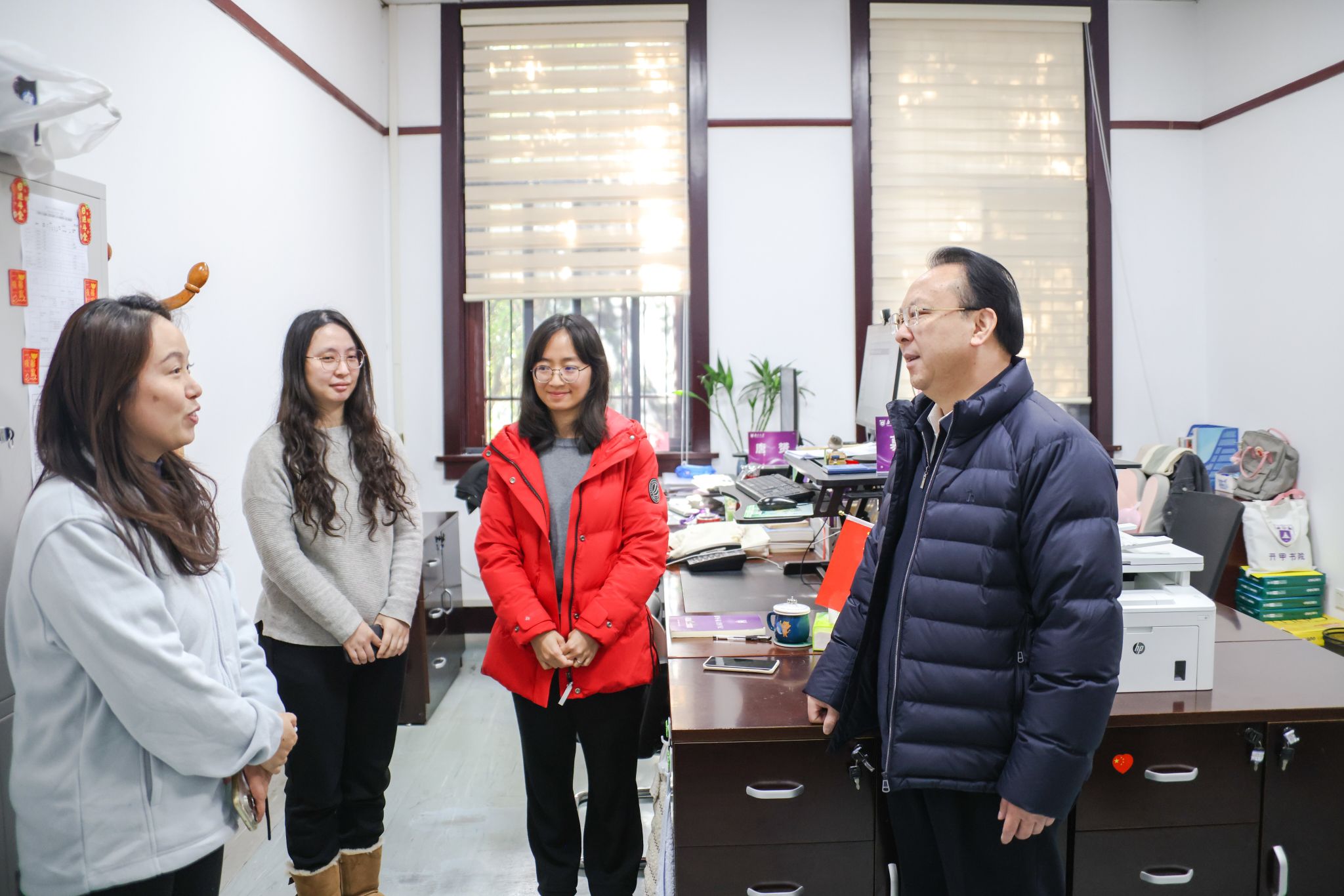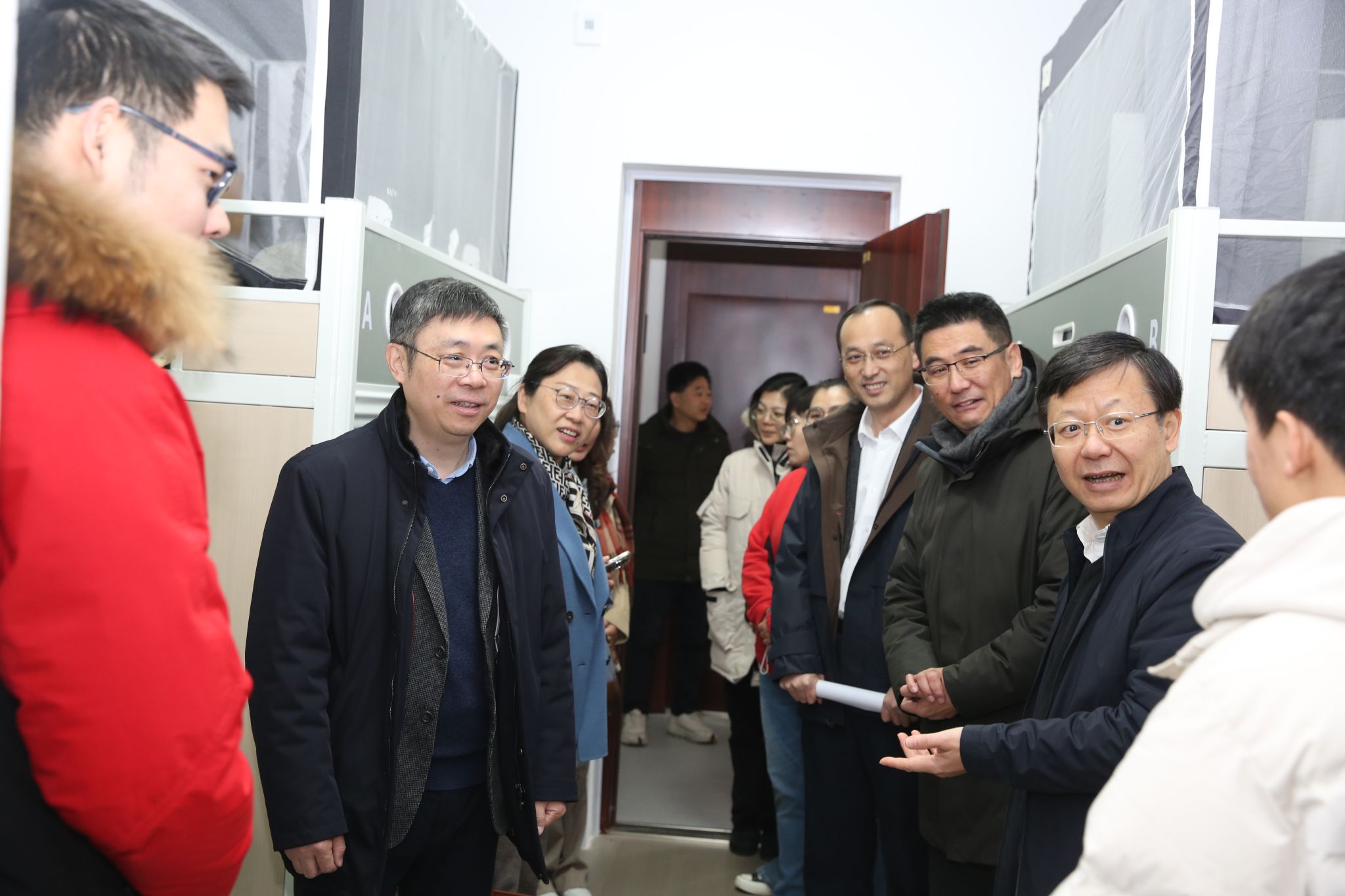 在苏州校区,谭铁牛逐一走访苏州校区各管理机构部门与学院,看望慰问师生员工,并向大家致以新年的祝福。在苏州校区各学院,他详细询问了师生们的生活与科研情况,鼓励大家在新的一年里接续奋进,在苏州校区一流的工作与学习条件下实现科研新突破。