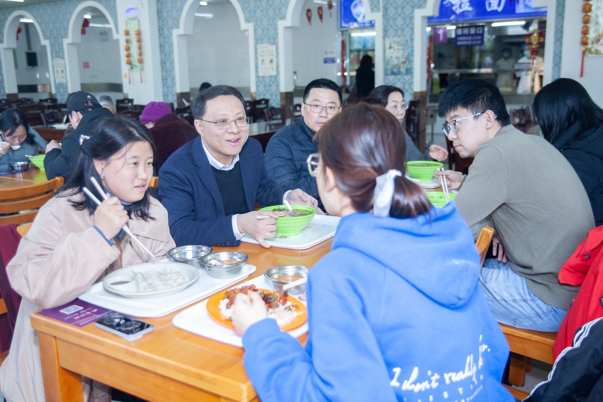 校党委副书记陈云松在仙林校区走访看望假期留校本研学生。在行政北楼120会议室,陈云松关心询问同学们的留校原因并赠送新年礼包,鼓励大家利用假期时间做好学习科研工作,度过一个平安、欢乐、充实的新春假期。在大气科学学院育人活动室,陈云松看望了大气科学学院和南赫学院留校研究生并赠送新年礼包,他仔细询问了同学们在留校期间的学习生活情况和未来科研工作计划,鼓励同学们利用寒假时间在科研上迈出新步伐,并祝福大家新春快乐。在化学化工学院,陈云松与留校研究生亲切交谈并赠送新年礼包,他详细询问了大家的科研进展和生活情况,勉励同学们克服困难、自强不息,在新的一年取得长足进步,同时叮嘱留校师生注意实验室安全,度过一个欢乐祥和的新年。随后,陈云松一行前往学生餐厅,与留校的历史学院、地球科学与工程学院、化学化工学院博士生共进午餐,他关心同学们在校的学习环境和生活条件,了解他们的实际需求和困难,并叮嘱大家在完成科研任务的同时,要提高安全防范意识,保持与家人的联系,度过一个平安、喜悦、祥和的春节。