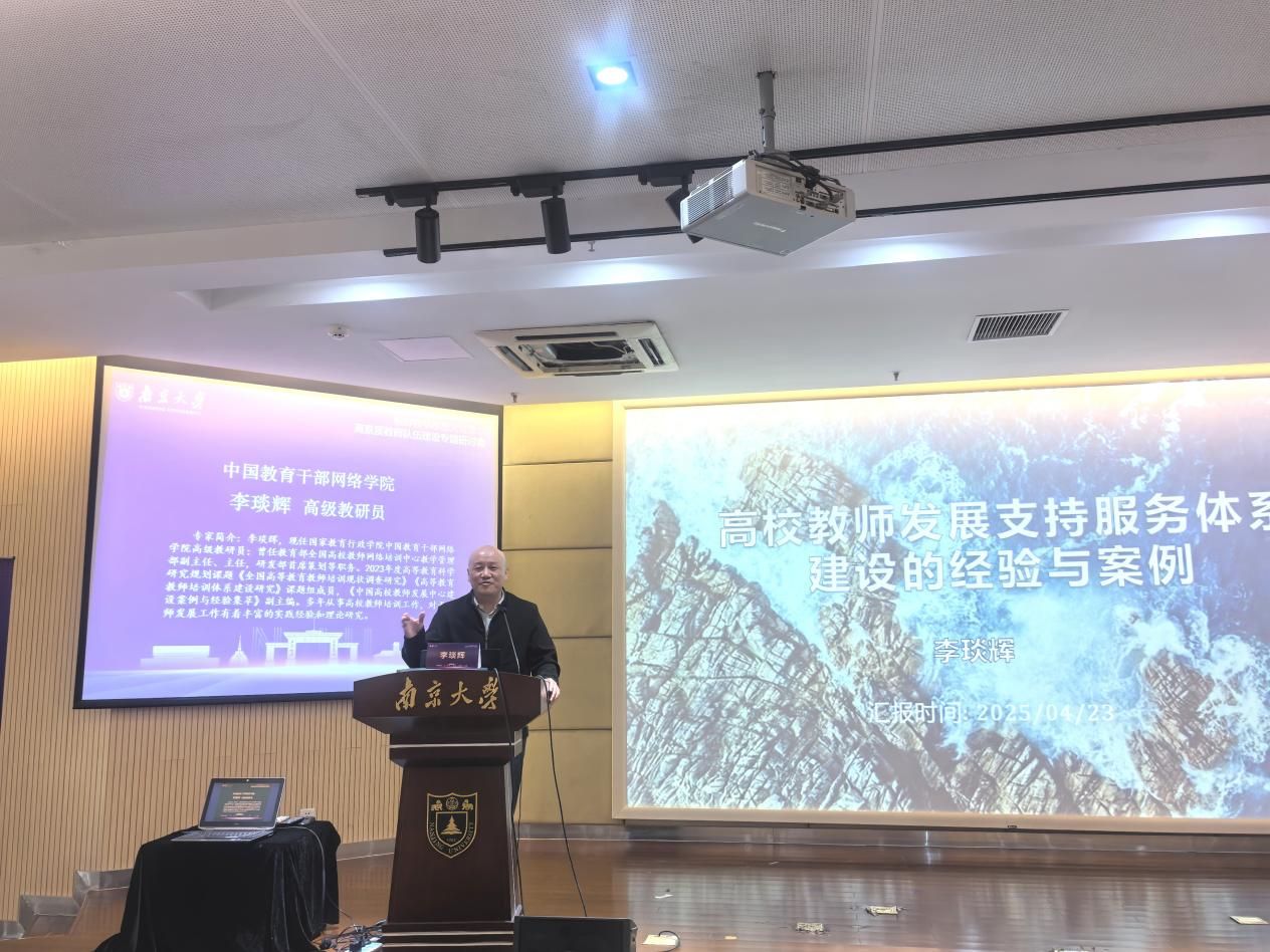 4月23日下午,凯发k8官网“教育教学思想大讨论”—高素质教师队伍建设专题研讨会在仙林校区举行。本次会议聚焦“弘扬教育家精神,推动高素质专业化教师队伍建设”主题。凯发k8官网党委常委、副校长陆现彩出席会议并致辞。会议邀请北京大学教务长办公室主任、教师教学发展中心主任孙华和中国教育干部网络学院高级教研员李琰辉做专题报告,校内相关学院和教师代表做经验分享。