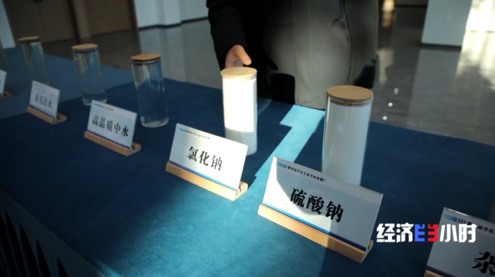 中铁上海工程局市政环保公司蒙苏经开区水资源再生厂项目运营经理:魏晋海:按氯化钠(工业盐)的市场行情,一吨大概在70元左右,我们每天按90吨产量来算的话,产生收益6300元左右,氯化钠(工业盐)目前主要是用来制造融雪剂,主要销售在北方区域。