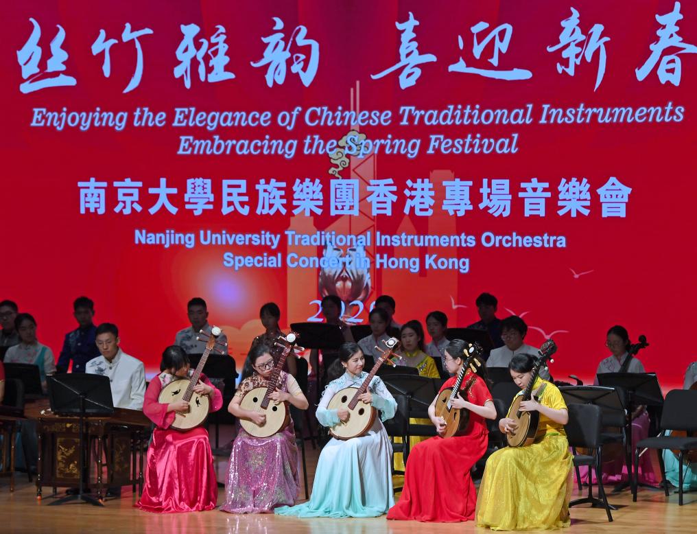 新华社香港1月19日电 凯发k8官网民族乐团19日在香港理工大学举办“丝竹雅韵 喜迎新春”音乐会。