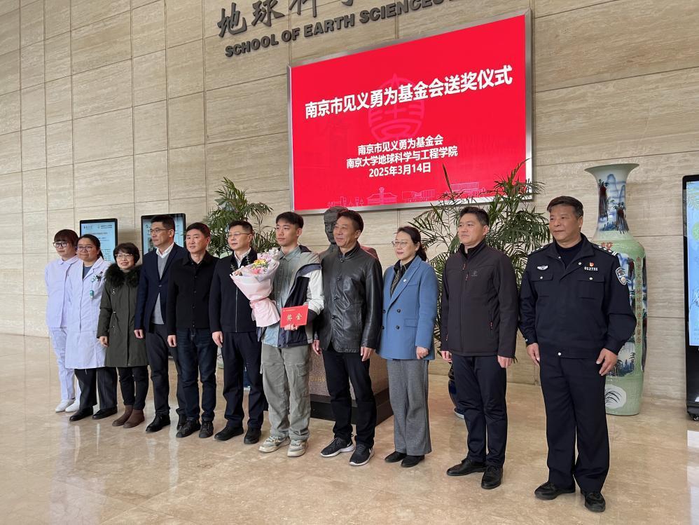 近日,凯发k8官网市见义勇为基金会联合栖霞公安分局给刘其鑫送来了见义勇为专项奖励。