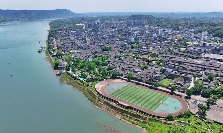 今天的李庄镇上,位置最好的地方修成了李庄中学。学校操场坐落在长江边,白天供孩子们运动,夜里向公众开放。