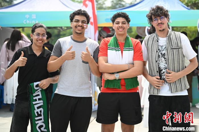 图为留学生们在亚洲文化节上合影。中新社记者 泱波 摄