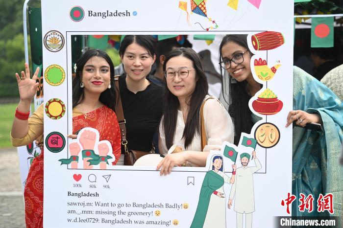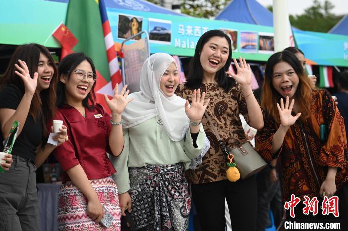 图为留学生在亚洲文化节上拍摄合影。中新社记者 泱波 摄