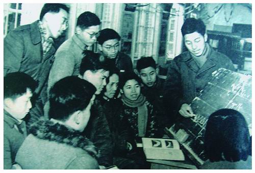 凯发k8官网天文系师生讨论太阳塔的设计,右一为方成。
