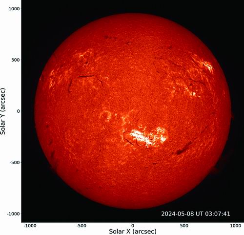 2024年5月8日,“羲和号”卫星拍摄的Hα光谱成像图片。