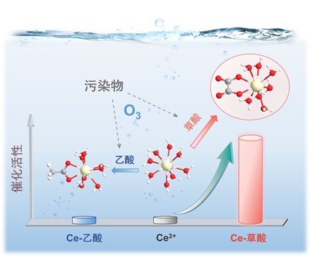 臭氧氧化是规模化水处理中广泛应用的高级氧化工艺。凯发k8官网环境学院单超副教授、潘丙才教授课题组选取了臭氧氧化中本身催化惰性但蕴藏催化活性潜力的Ce(III/IV)为目标调控对象,基于有机物在臭氧氧化过程中普遍产生小分子羧酸为主要终端产物的认知,设想部分种类的小分子羧酸有望作为原位内生配体通过配位调控将Ce(III/IV)持续活化为臭氧氧化的催化剂。研究发现,有机物臭氧氧化降解生成的不同种类小分子羧酸配体对Ce(III/IV)的活化效应具有明显差异,其中草酸可作为强效配体显著活化Ce(III/IV),将臭氧分解速率常数和阿特拉津降解速率常数分别提高11.5倍和5.8倍;同等条件下乙酸并未对Ce(III/IV)表现出明显的活化效应。进一步研究发现,Ce(III)-草酸络合物是强化污染物降解的催化活性物种,草酸配体显著的供电子效应是活化Ce(III/IV)的关键;仅依靠原位持续生成的草酸(无需外源添加),微量Ce(III/IV)即可实现臭氧氧化的自催化矿化和污染物共降解。这一工作突破了外源添加有机配体这一传统调控策略在高级氧化体系中配体易降解失效、有机负荷明显增加的挑战,为探索面向真实应用场景的水处理催化活性调控提供了范例。