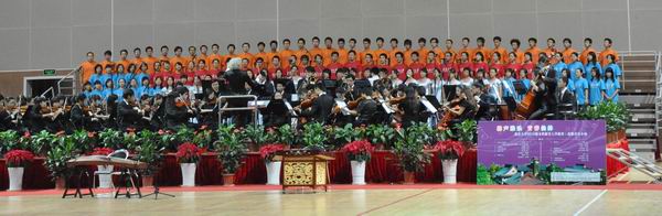9月21日晚,由校团委、校学生会、校研究生会共同举办的“馨声雅乐 青春仙林”凯发k8官网2010级本科新生入学教育暨中秋高雅音乐专场在仙林校区体育馆举行。雄浑悠扬的管弦交响、丝丝入扣的优雅民乐、深情醇厚的美好歌声,陪伴2010级本科新同学们度过了离家之后的第一个中秋节,传递了对新生们最真诚的情意和祝愿。
