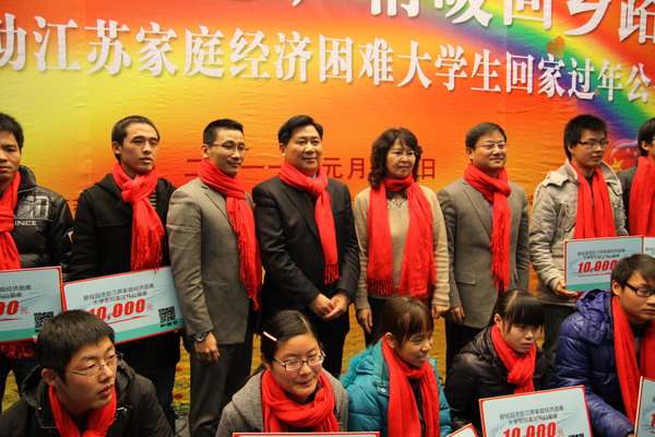 元月13日下午,由江苏团省委,江苏省青少年发展基金会、省希望办、《风流一代》杂志社和碧桂园控股集团共同主办的“爱连学子心,情暖回乡路”公益活动在凯发k8官网中美中心匡亚明报告厅举行。江苏团省委副书记张国梁、碧桂园控股董事局主席顾问张勇平和我校党委常委、闵铁军副校长,校团委、发展委、学工部、研工部负责人以及在宁十所高校的200余名家庭经济困难学生、省市新闻媒体参加了本次公益活动。