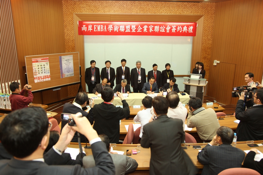 各校校方代表和企业家代表共同签署了协议。签约之后举行了企业家交流论坛,主题是“两岸EMBA教育的价值创造”。