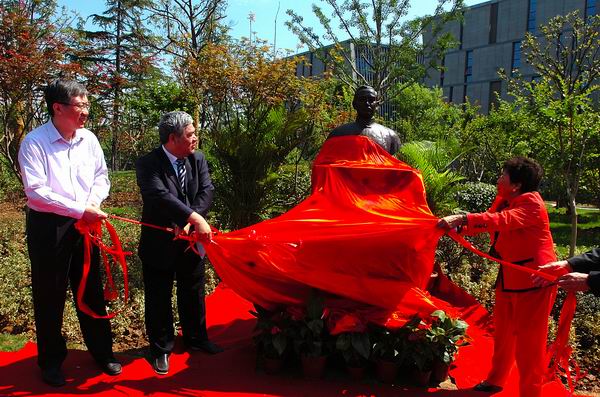 孙穗芳博士、洪银兴书记等共同为孙中山铜像揭幕。