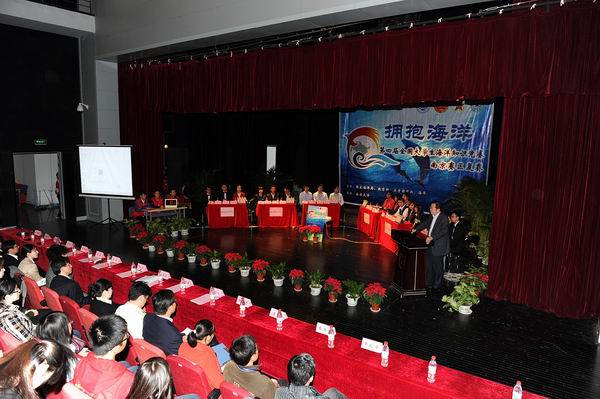 国家海洋局海洋日活动办公室的闫安先生代表主办方发言。他说,第四届全国大学生海洋知识竞赛的目的是全面贯彻落实胡锦涛总书记“增强海洋意识”的重要指示,宣传普及海洋知识,增强海权意识。复赛中获一等奖的参赛队将在一周后前往厦门参加总决赛,优秀选手将有机会前往南极、北极和西沙群岛进行考察。