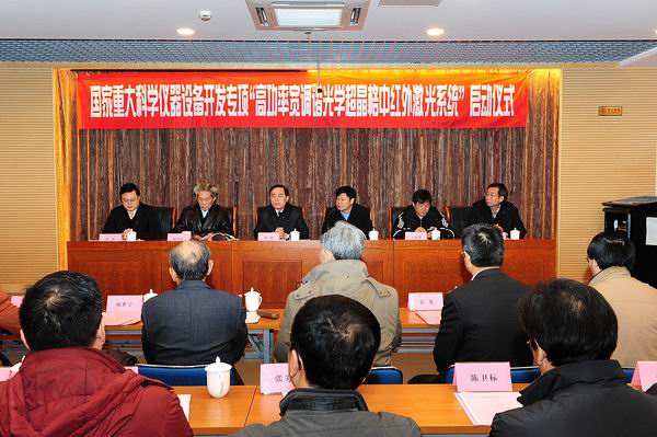 项目负责人祝世宁院士详细汇报了此项国家重大科学仪器设备开发专项的总体情况。中红外激光在大气探测、激光医疗、激光雷达、光电对抗等应用领域具有重要地位。在军事和医学等方面都有广泛的应用。他希望该专项能让我国激光技术再上一个新的台阶,并为人才培养做出新的贡献。