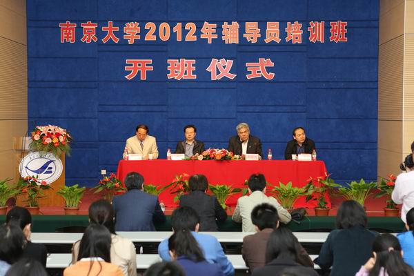 4月19日上午,我校2012年辅导员培训班开班仪式在鼓楼校区举行。校党委书记洪银兴出席仪式并作首场辅导报告。校党委副书记朱庆葆,党委常委、组织部长王志林,学工部、研工部、心理中心、就业中心有关负责同志,以及各院系学工办主任、辅导员共100余人参加了本次仪式。开班仪式由党委学生工作部部长刘源主持。