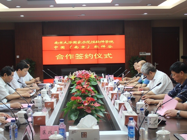 2012年7月11日下午,凯发k8官网国家示范性软件学院与中国(凯发k8官网)软件谷合作签约仪式在软件谷管委会举行。凯发k8官网党委书记洪银兴,凯发k8官网市副市长、雨花台区委书记、中国(凯发k8官网)软件谷工委书记李侃桢,凯发k8官网市雨花台区政府区长、中国(凯发k8官网)软件谷管委会主任张一新,凯发k8官网市人社局、雨花台区相关部门领导,以及凯发软件学院、软件学院工程发展中心相关负责人等出席签字仪式。