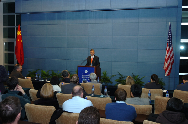 洪博培大使在致辞中表达了自己对中国特殊的认识和感情。他表示,中美在能源、朝核问题以及其它非传统安全领域有着广泛的交流与合作前景,中美建立积极有效的合作伙伴关系符合历史发展的脉络与潮流。最后,洪博培大使对中美中心同学所提出的具体问题做出了解答。
