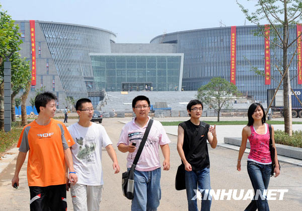 7月1日,几名学生在仙林新校区体育馆前参观。新华社记者孙参摄