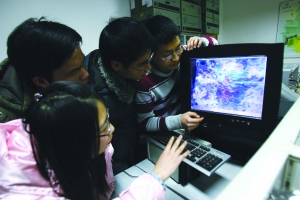 王元庆的学生正在研究屏幕上的3D画面 快报记者 辛一 摄