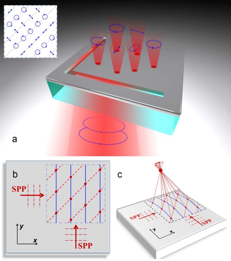 近年来,等离子体激元的研究将微纳光子设计带到了前所未有的高度。表面等离子体场的矢量特征使得金属纳米结构可以在非常薄(亚波长)的尺度下进行光场的偏振控制成为可能。许多微小型偏振器件已经通过金属纳米结构研制成功。然而,这些器件大多数功能都相对简单,通常只能完成单一的或非常有限的偏振调控。这大大制约了这类光子器件的信息容量和处理能力。