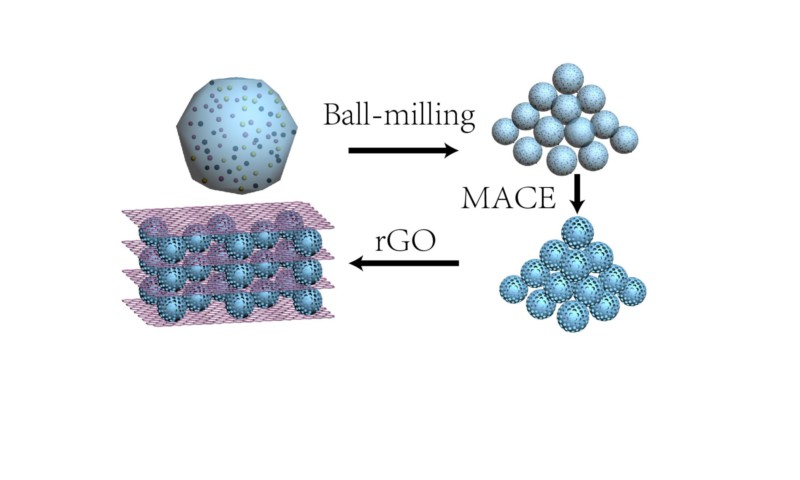 该课题组着眼于工业生产中的低纯度硅源(铁硅,金属硅),通过球磨和金属辅助化学刻蚀的方法,将微米级颗粒暴露在酸性溶液中,发生的化学刻蚀能够将低纯度硅中的杂质去除,将硅纯度从83.4%提升到99.4%,同时化学刻蚀将微米级硅颗粒变成多孔状。这些被纯化且多孔化的硅颗粒,运用在锂离子电池的负极方面,能够缓解其在嵌锂时发生的体积膨胀,获得了很好的循环及倍率性能。