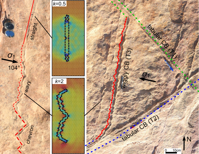 图:采用改进的离散元法模拟了砂岩不同形态压密带的形成