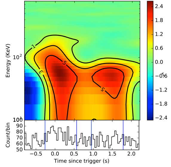 图1. GRB 170817A的能量-时间分布与光变曲线