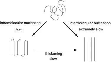 图1 链状大分子的分子内链折叠成核模式和分子间缨状微束成核模式