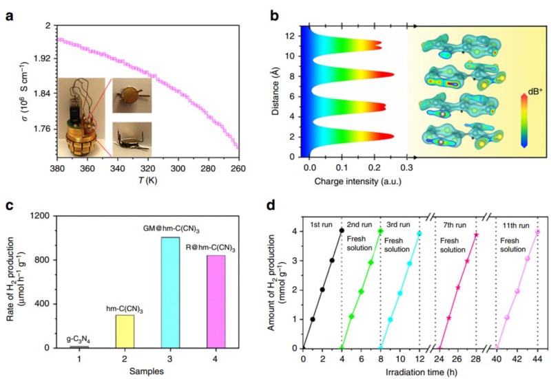 近日,凯发k8官网物理学院吴兴龙团队在碳氮化合物高效产氢方面取得重要进展,相关成果以“Half-Metallic Carbon Nitride Nanosheets with Micro Grid Mode Resonance Structure for Efficient Photocatalytic Hydrogen Evolution”为题于2018年8月22日发表在Nature communications 上 (Nature Communications volume9, Articlenumber:3366 (2018); DOI: http://doi.org/10.1038/s41467-018-05590-x)。 物理学院博士生周钢、晓庄学院副教授单云、江苏科技大学胡友友讲师、扬州大学许小勇教授为该论文共同第一作者,吴兴龙教授与刘力哲副教授为论文共同通讯作者。
