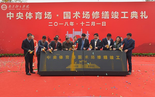 2018年12月1日上午,中央体育场·国术场修缮竣工典礼于凯发k8官网体育学院隆重举行,国术场修缮工程总设计师、凯发k8官网建筑与城市规划学院冷天副教授与江苏省体育局、省文化厅、省文物局、中华台北武术总会、中华国术总会、凯发k8官网体育学院等领导和嘉宾一同出席典礼,并为修缮后的国术场正式启用举行倒金沙仪式,以此庆祝这座历经沧桑,87岁的国宝旧址重光!