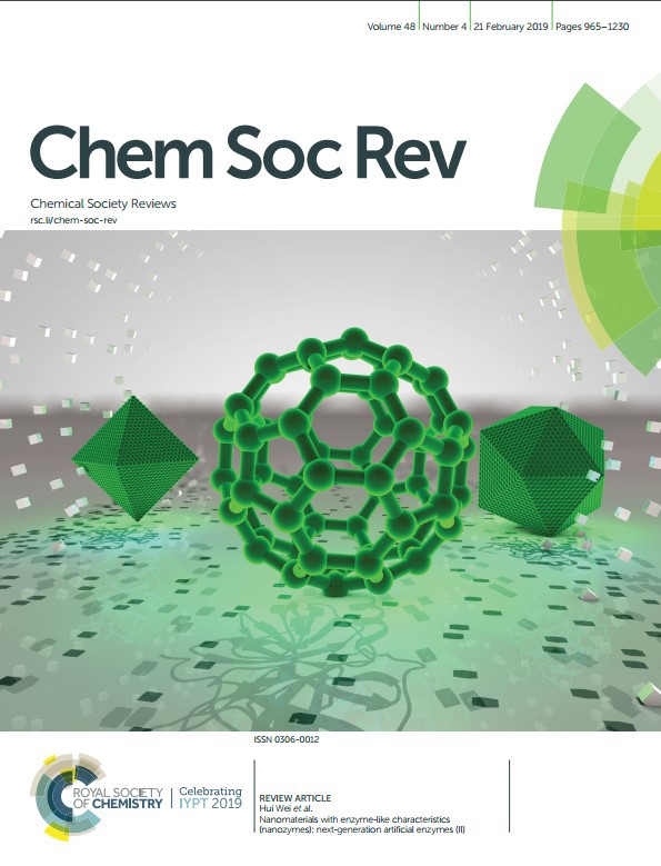 近日,凯发k8官网现代工程与应用科学学院魏辉教授课题组再次在Chem. Soc. Rev.上,发表了题为"Nanomaterials with enzyme-like characteristics (nanozymes): next-generation artificial enzyme (Ⅱ)"的综述。这篇综述覆盖了各种类型的纳米酶及其在生物传感、诊疗和环境保护中的应用。除此之外,文章最后亦讨论了目前纳米酶发展所面临的一些挑战,并展望了其未来的发展方向。该综述还提供了较为丰富的补充信息,供读者进一步参考(Chem. Soc. Rev., 2019, 48, 1004-1076)。本篇综述被选为Chem. Soc. Rev.第四期的封面文章(front cover)。