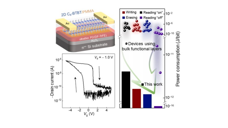 图1. 基于超薄有机功能薄膜材料的有机铁电晶体管型存储器展现出超低能耗、低压的优异器件特性。