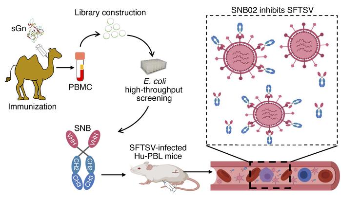 抗SFTSV的骆驼单域纳米中和抗体研发示意图