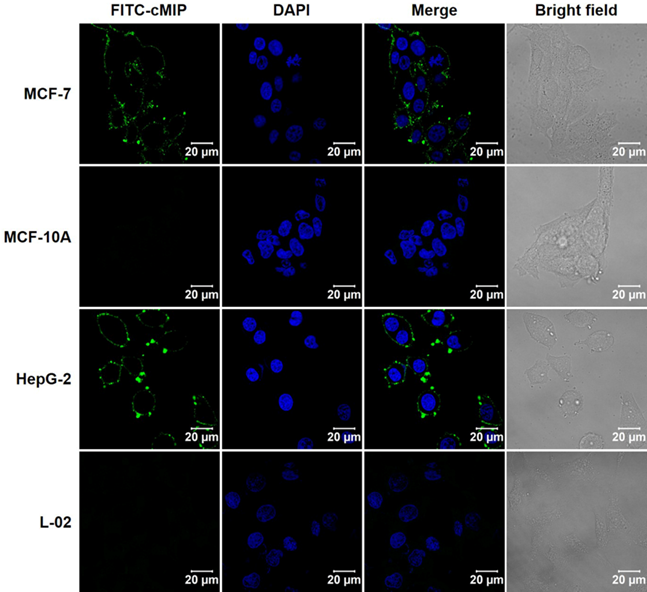 图5. 癌细胞荧光成像 图6. 基于双重cMIP的c肽分析