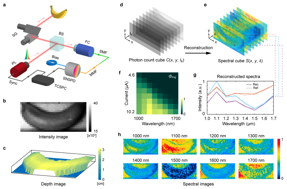 光谱学主要研究光和物质之间的相互作用与波长之间的关系,广泛应用于基础研究和工程技术的各个方面。传统的光谱仪都需要一些色散或干涉元件,结构复杂、制备困难、价格比较昂贵,而且光谱通道数有限。另一方面,单光子探测器的研究近年来也十分受到重视,尤其是超导纳米线单光子探测器 (SNSPD) 是一个很有前途的选择,其光谱响应范围宽(从紫外线到中红外)、量子效率高、时间抖动小、计数速率高、暗计数低,还可以与纳米光电路实现片上集成。但是,到目前为止,单光子探测器仅用来记录光子的有无和多少,并没有关心入射光子的波长特性。