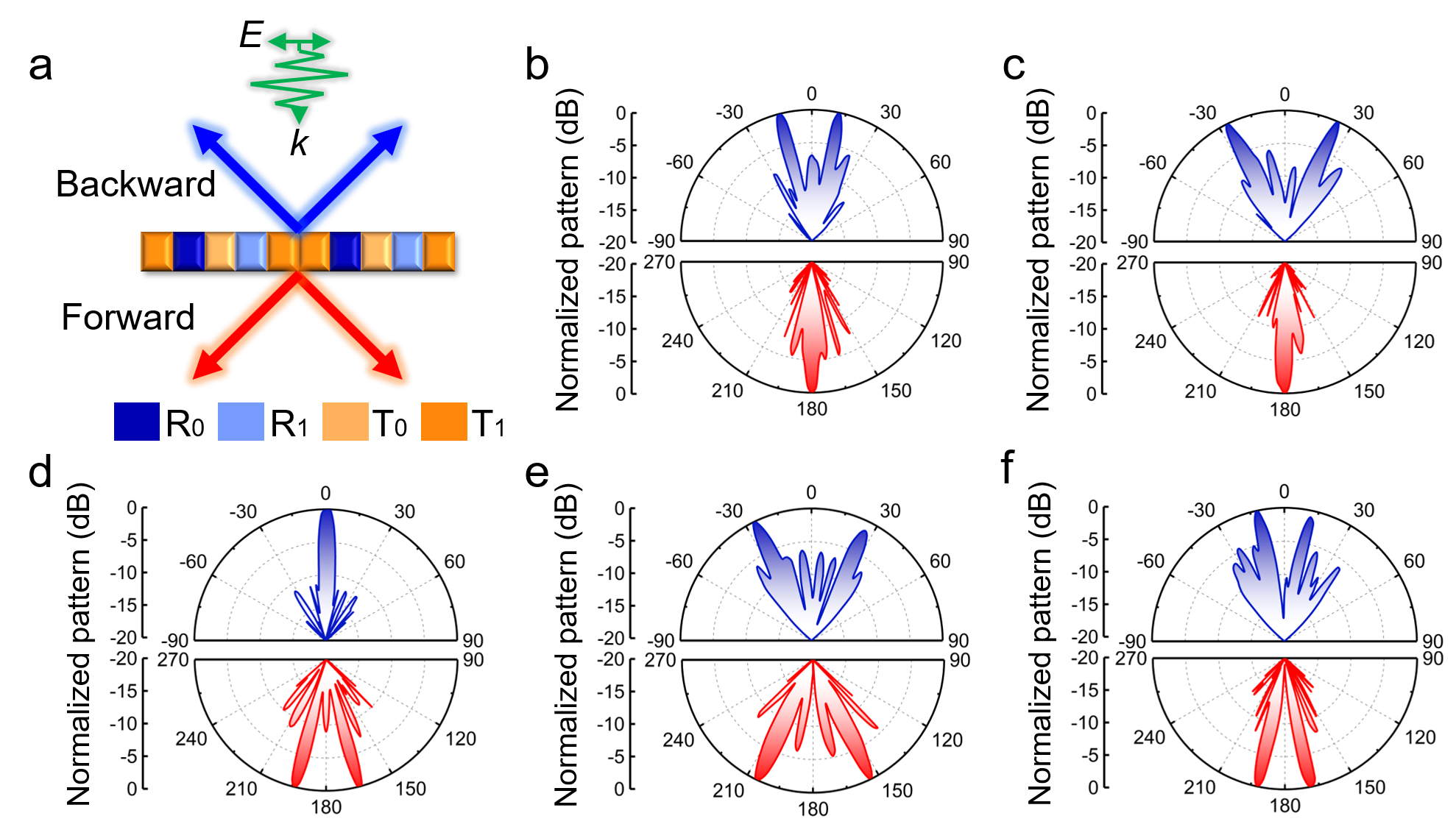 图2 同时在前向空间和背向空间动态生成相同/不同波束实验测试结果