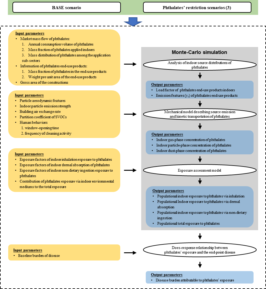 近日,凯发k8官网建筑与城市规划学院施珊珊副教授与合作团队的最新研究成果揭示了不同PAE使用限制政策实施情境在中国因避免可归因于PAE暴露的成人2型糖尿病及肥胖所带来的健康效益,为制定合理的PAE使用限制政策提供了理论依据。研究团队采取自上而下的研究思路,基于我国消费PAE的质量流动数据,利用"在用质量—室内浓度—人体暴露—疾病负担"这一顺序模型(图1),在严格至宽松的三种不同的PAE使用限制政策实施情境下,估计PAE所带来的成人2型糖尿病及肥胖疾病负担,并将之与未采用PAE使用限制政策的"基准"情境下的疾病负担作比较,得出相应的PAE使用限制政策所带来的健康效益。