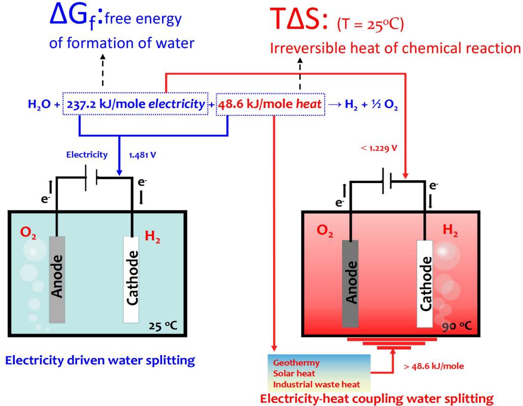 高效可再生能源制氢是能源供应从“碳循环”到“氢循环”转变的核心技术之一。单一电力驱动的电解水制氢技术存在以下挑战:1)电解池冷启动至工作温度(60-80oC)时间较长(通常>40min);2)化学不可逆热占比普遍较高,导致系统效率偏低;3)较高的过电势导致系统电压波动响应范围较窄且响应时间较长。这些技术挑战使得单一电力输入电解水制氢设备不能很好地适应可再生能源的波动性。