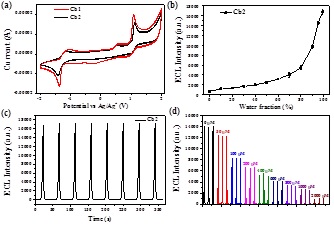 而Cb2表现出了明显的聚集诱导电化学发光(AIECL)性能,且表现出优良的ECL稳定性。同时Cb2可应用于神经递质多巴胺浓度检测,在生物检测领域表现出潜在的应用价值。
